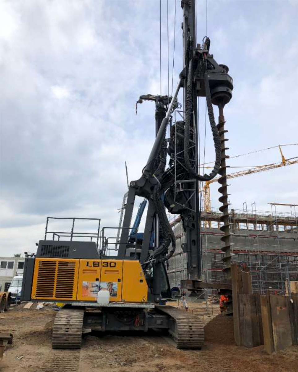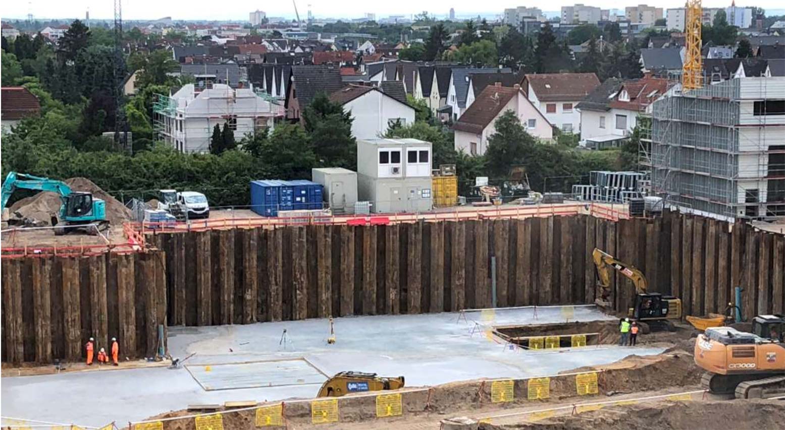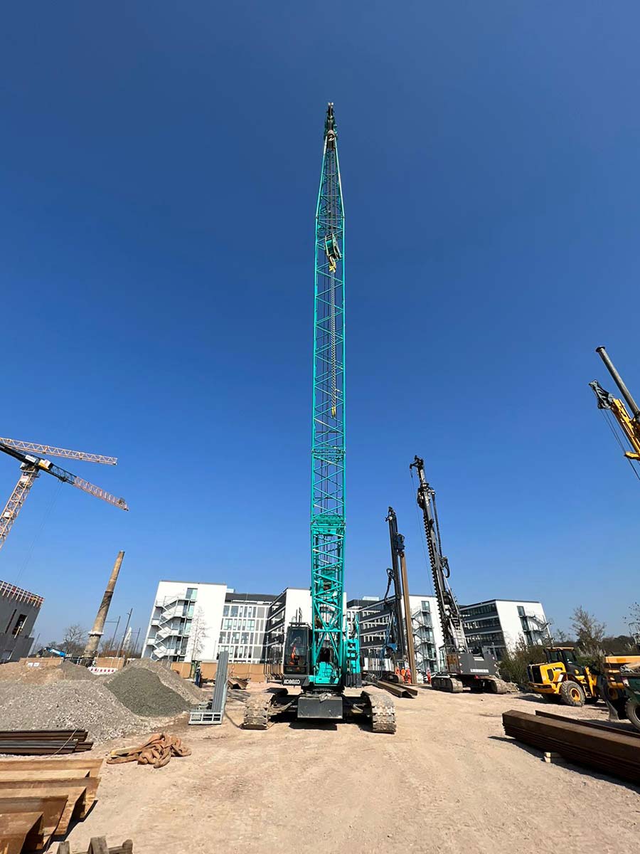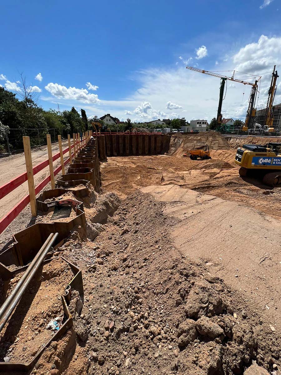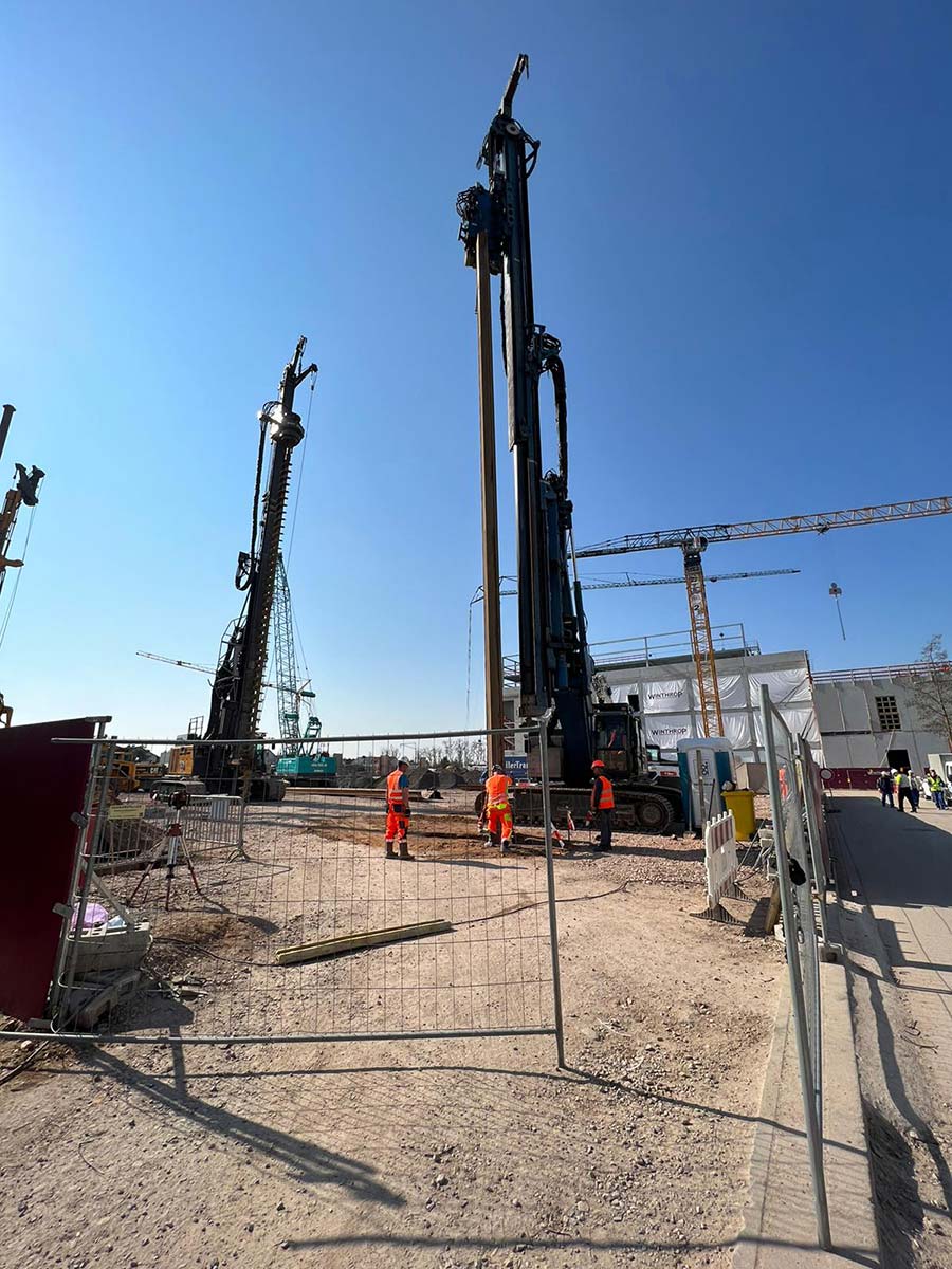 Neben dem Spundwandverbau erstellte die SFS International GmbH die Fundamente für die geplanten Turmdrehkrane sowie mehrere Brunnenbohrungen.