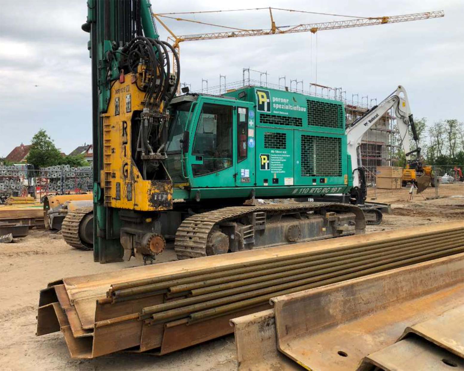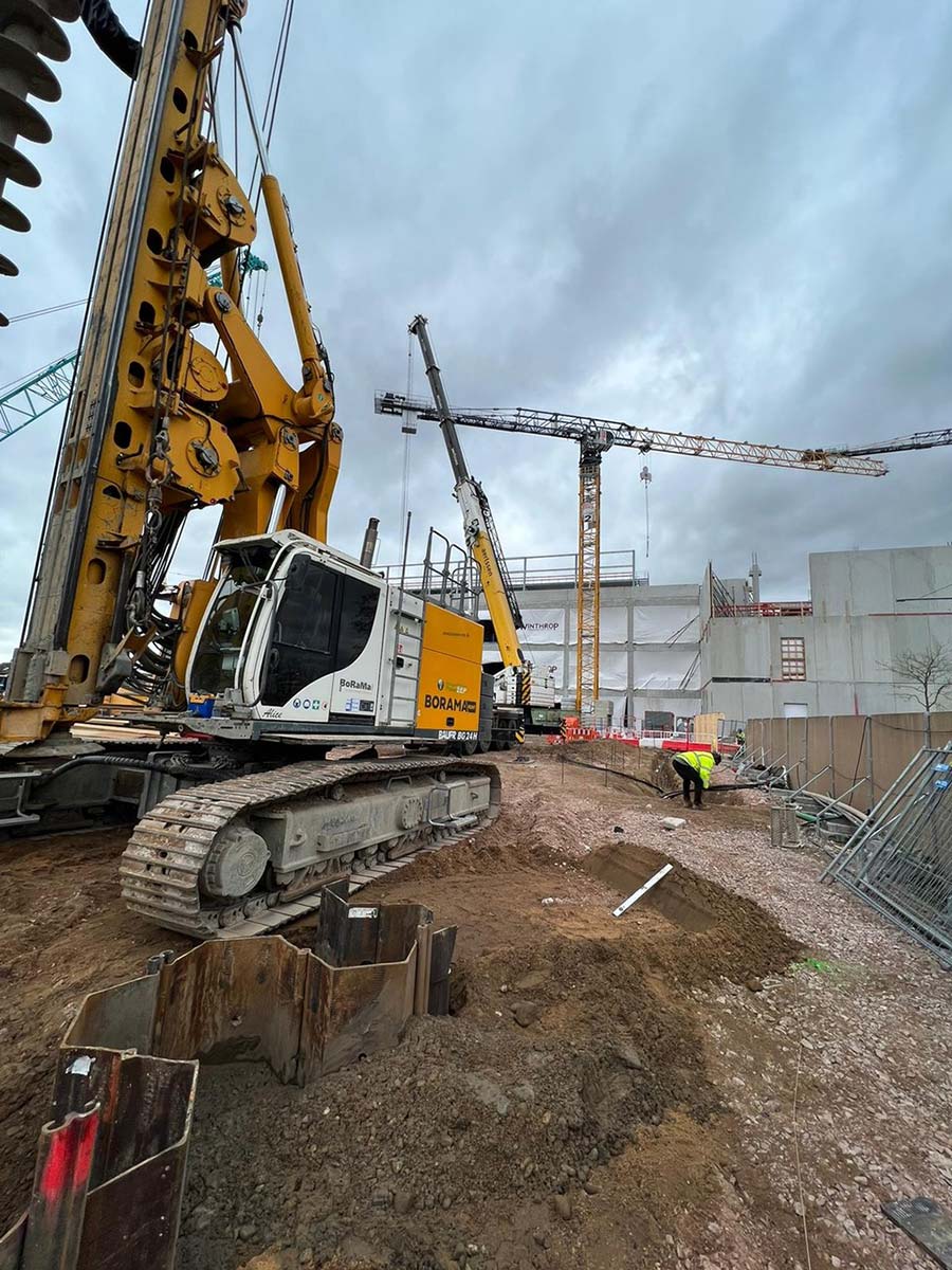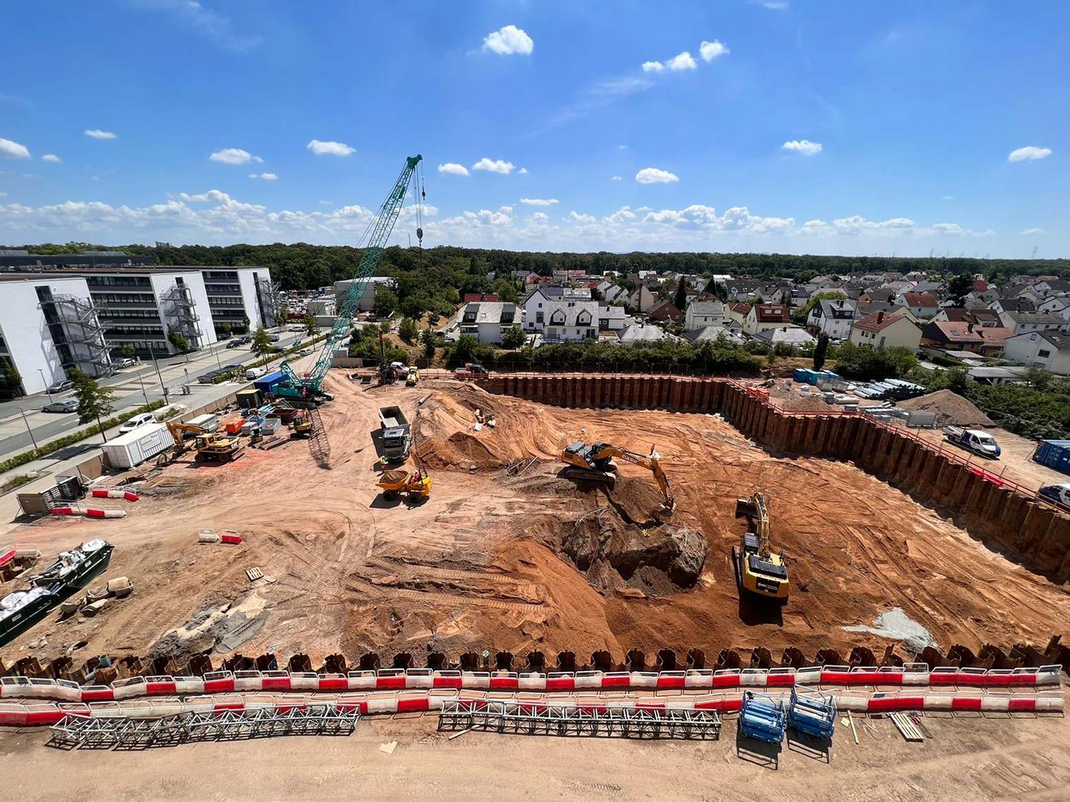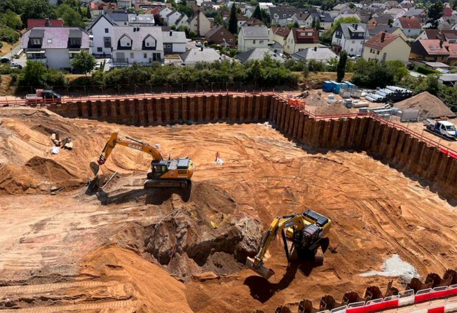 Neben dem Spundwandverbau erstellte die SFS International GmbH die Fundamente für die geplanten Turmdrehkrane sowie mehrere Brunnenbohrungen.