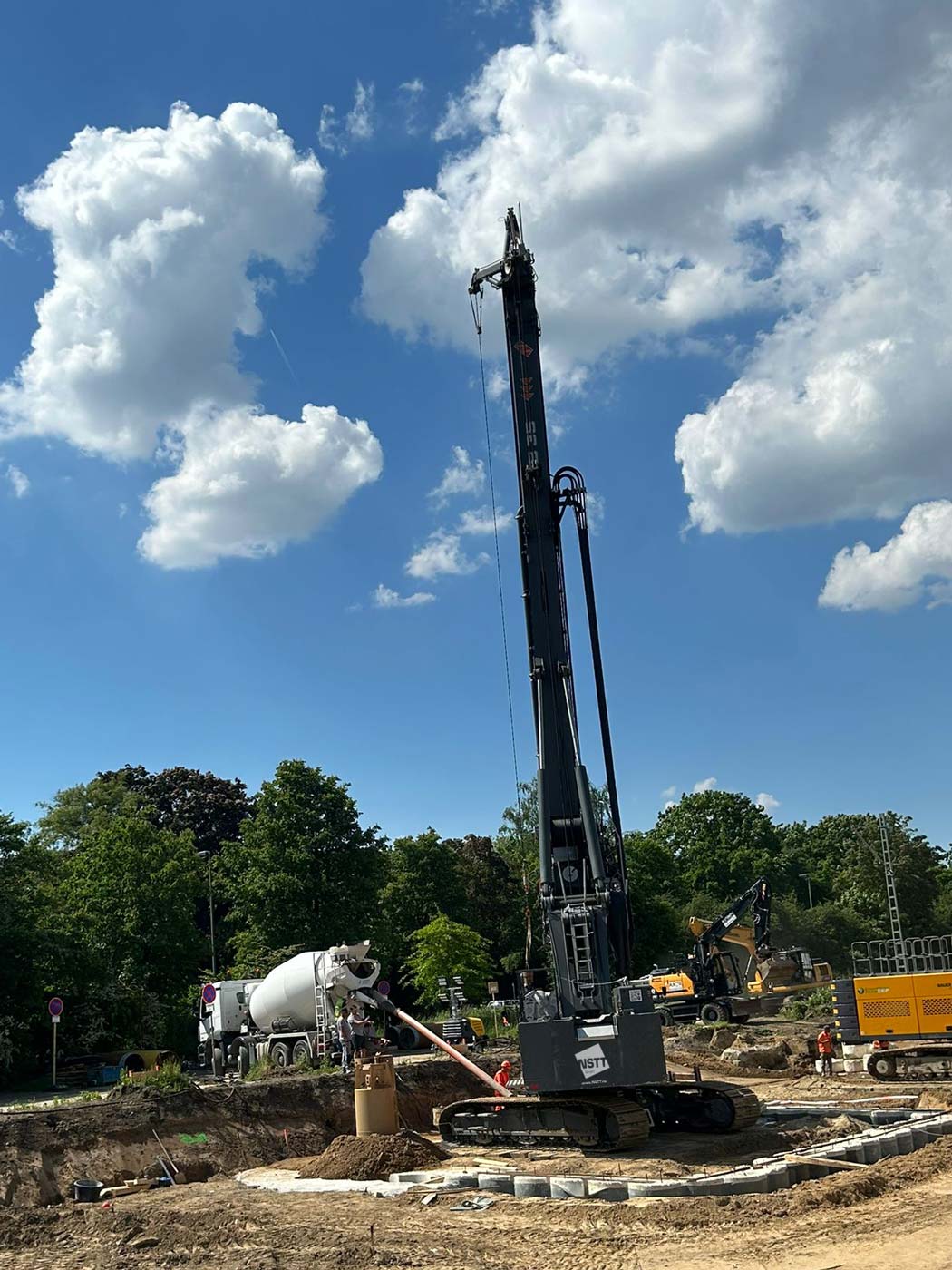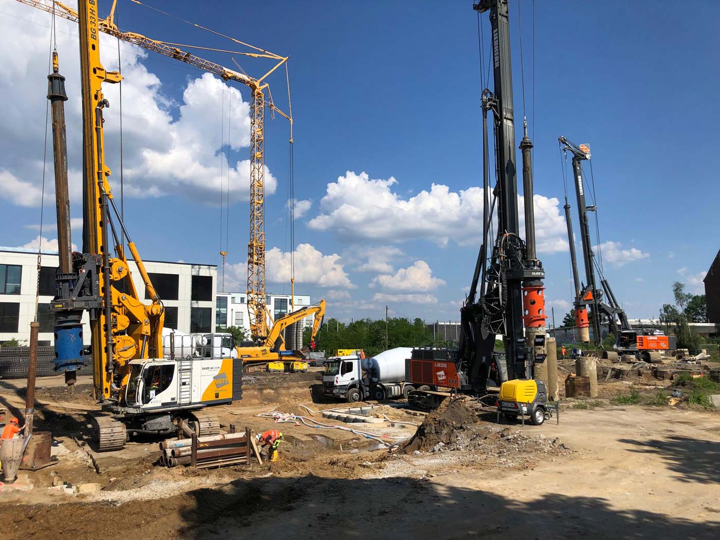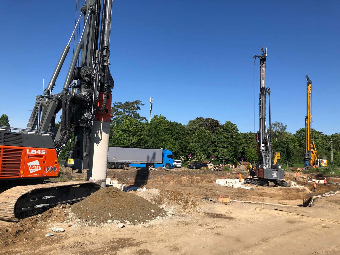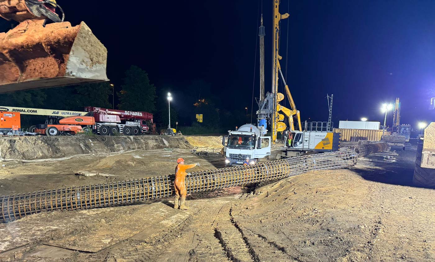 Zum Einsatz kamen dabei drei hochmoderne Groß-Bohrgeräte: Liebherr LB 45, Liebherr LB 35 und Bauer BG 33. Die Einrichtungsarbeiten der Baustelle begannen am 8. Mai 2024, und am 29. Mai wurde fristgerecht der letzte Bohrpfahl hergestellt.