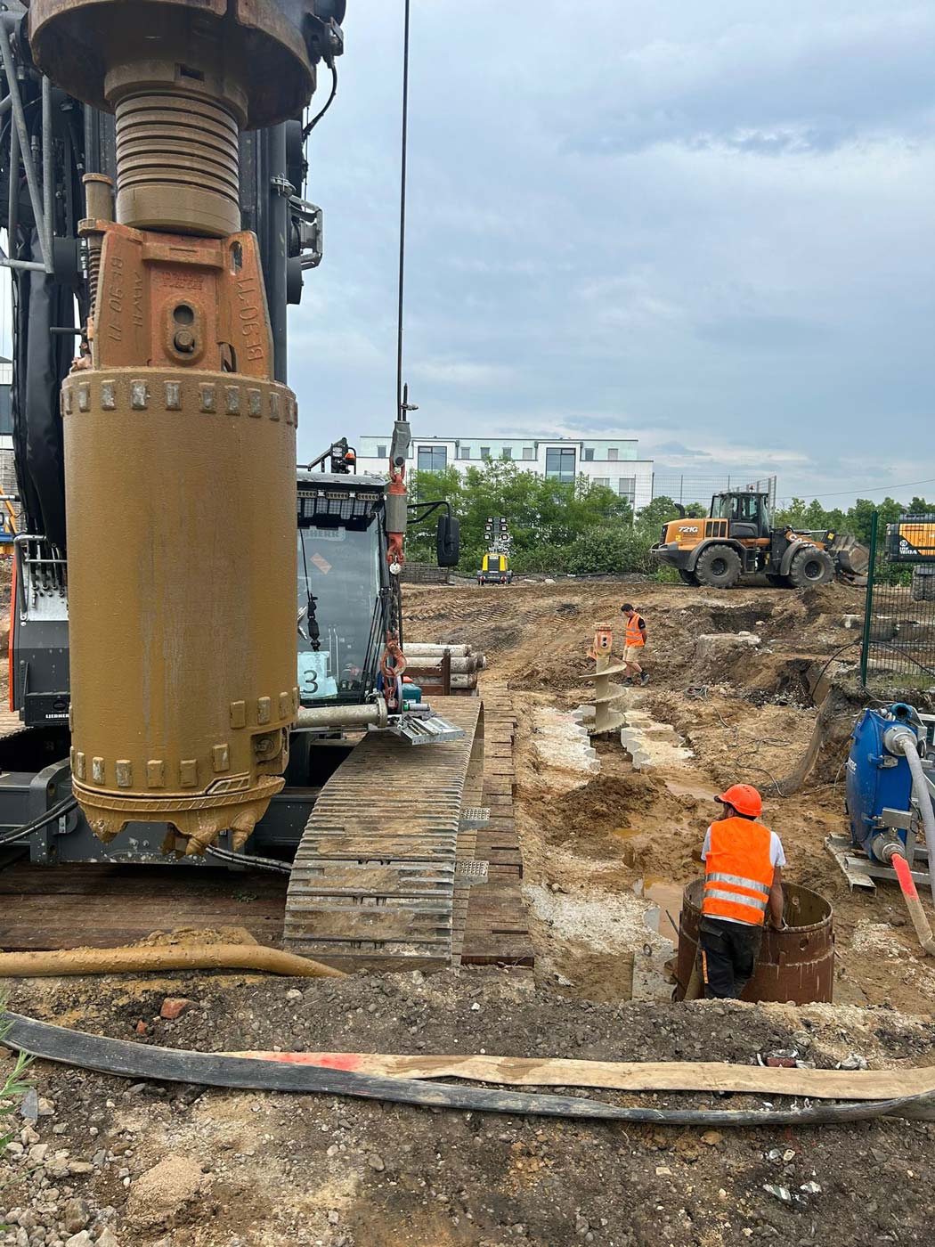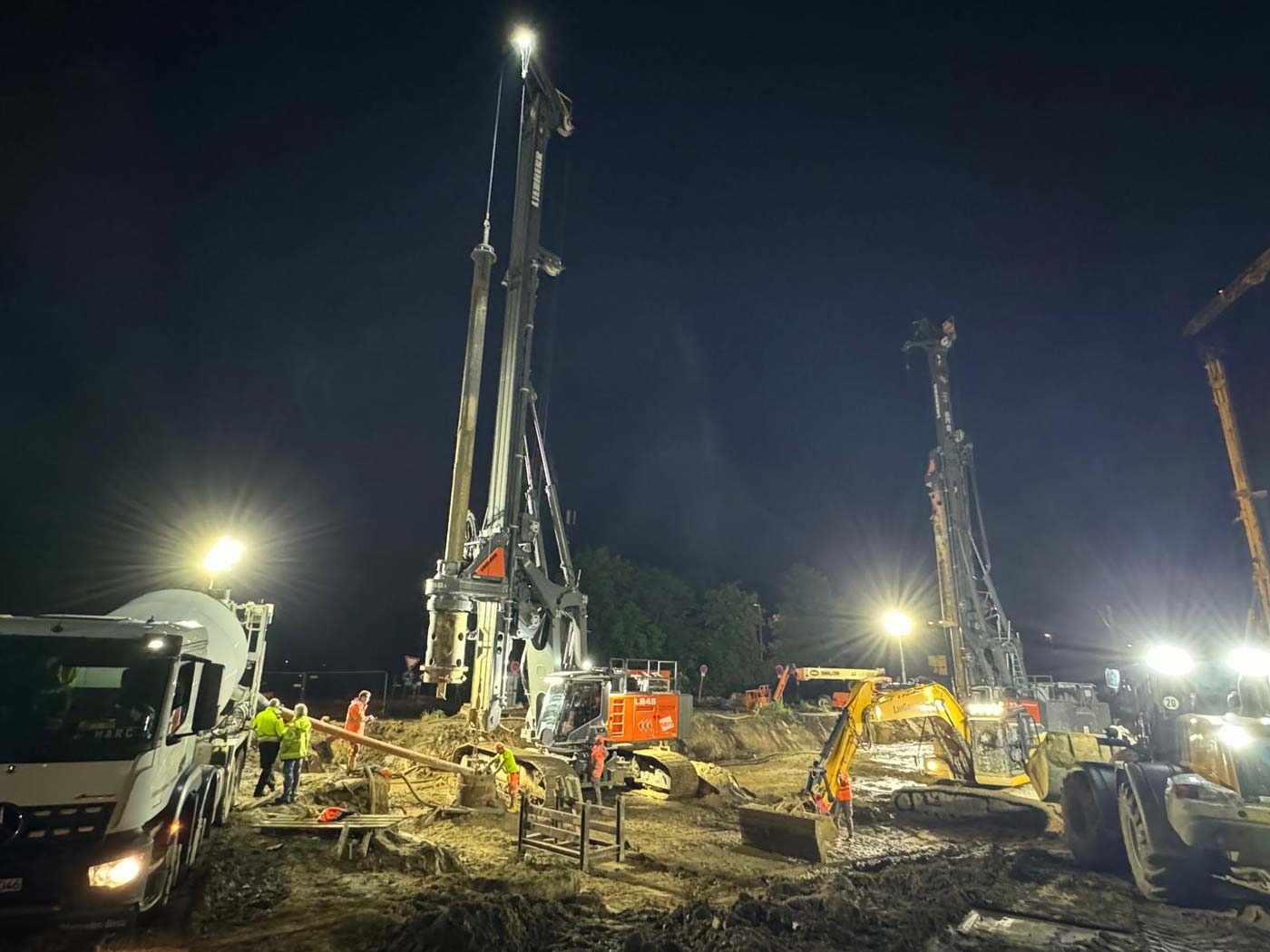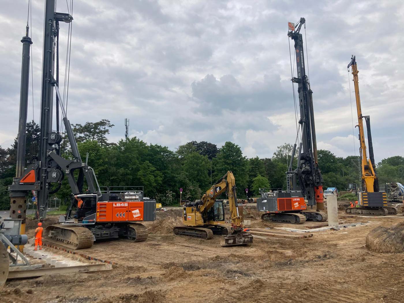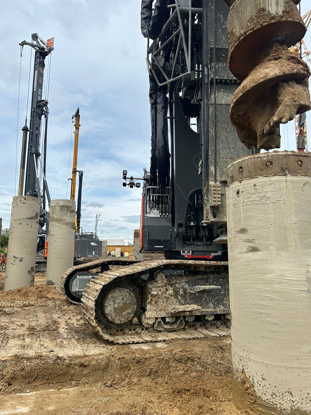 Zum Einsatz kamen dabei drei hochmoderne Groß-Bohrgeräte: Liebherr LB 45, Liebherr LB 35 und Bauer BG 33. Die Einrichtungsarbeiten der Baustelle begannen am 8. Mai 2024, und am 29. Mai wurde fristgerecht der letzte Bohrpfahl hergestellt.