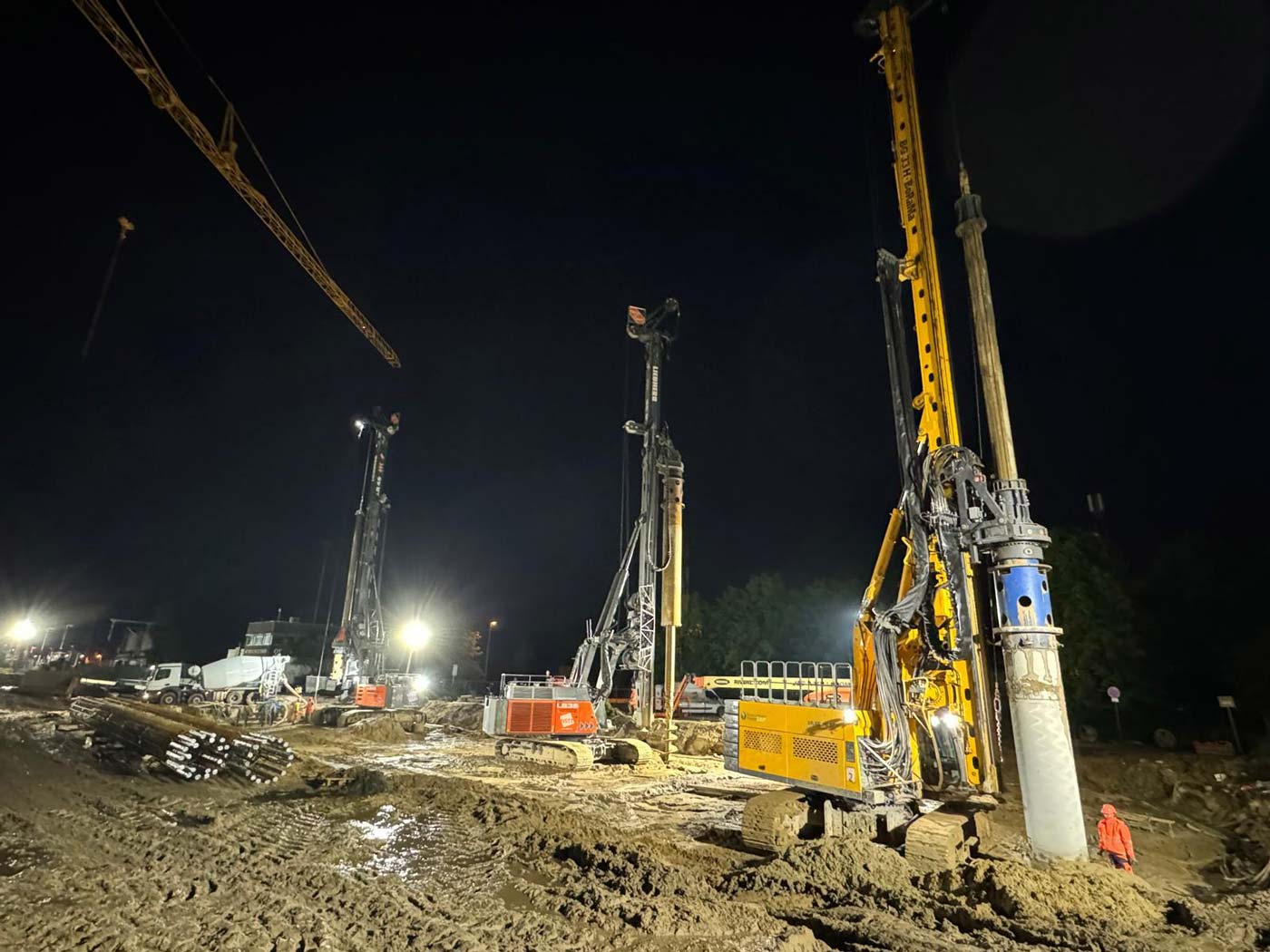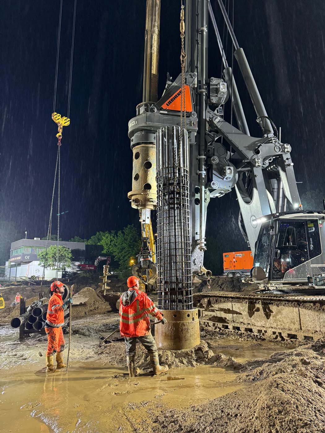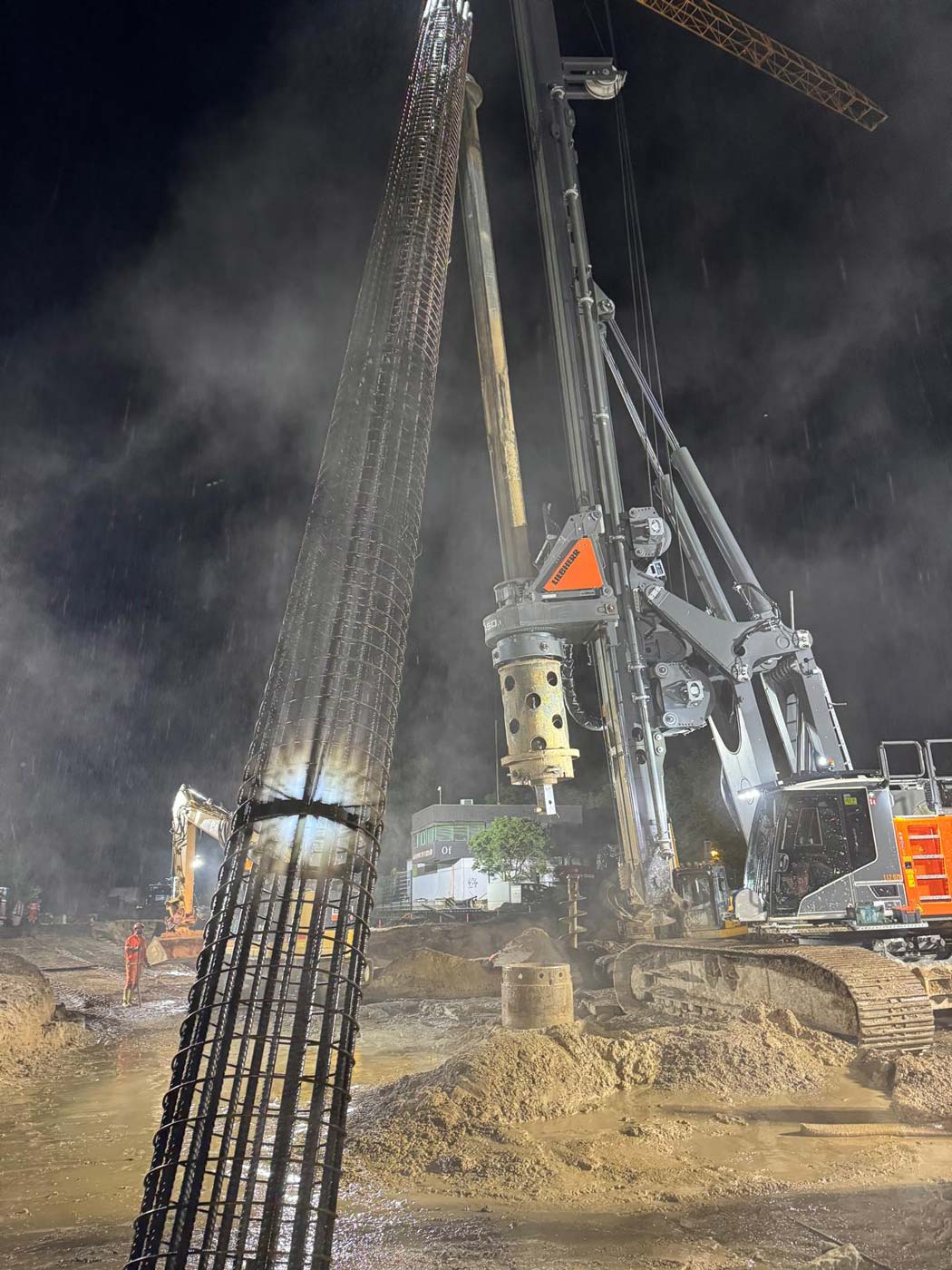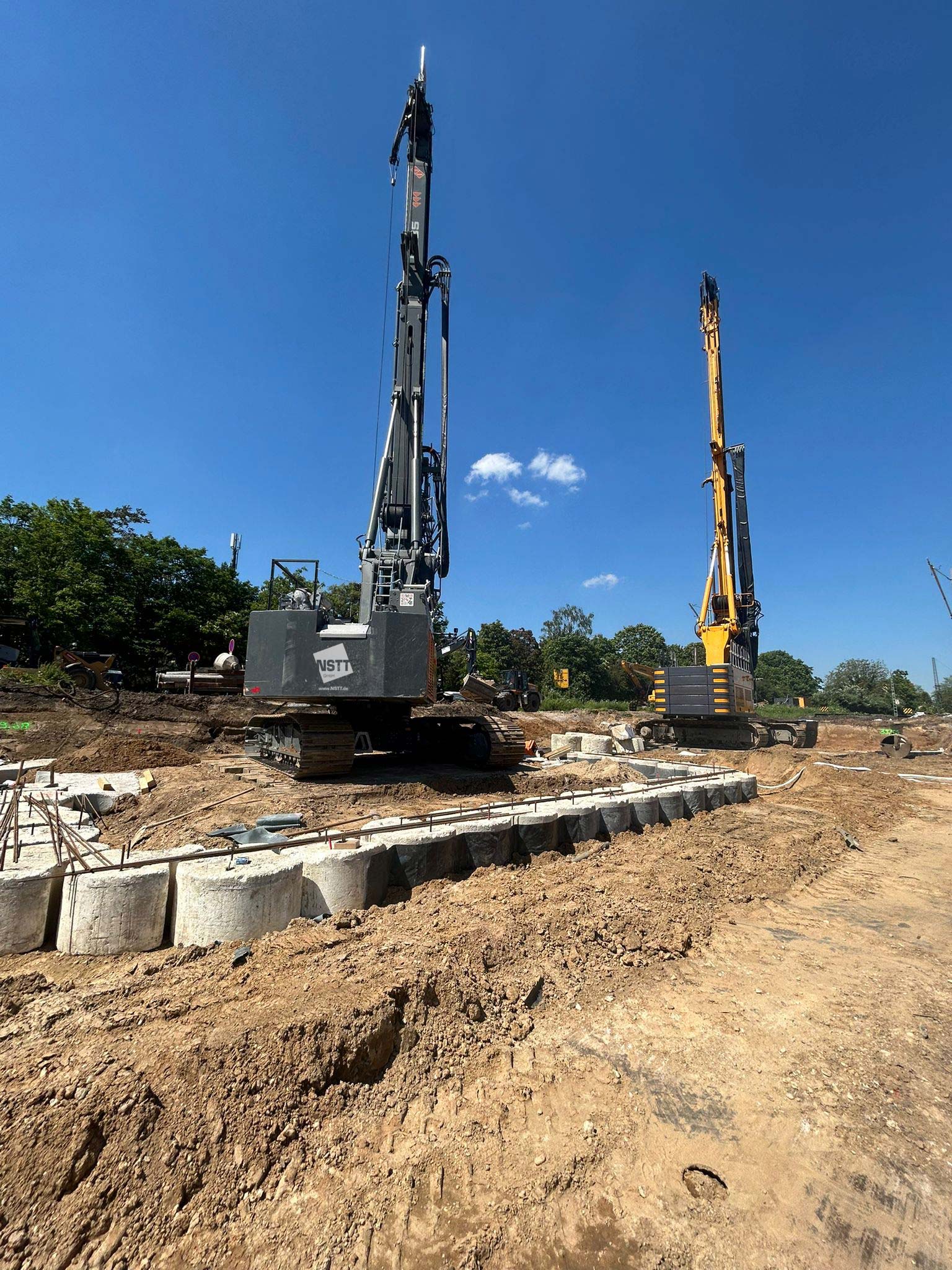 Zum Einsatz kamen dabei drei hochmoderne Groß-Bohrgeräte: Liebherr LB 45, Liebherr LB 35 und Bauer BG 33. Die Einrichtungsarbeiten der Baustelle begannen am 8. Mai 2024, und am 29. Mai wurde fristgerecht der letzte Bohrpfahl hergestellt.