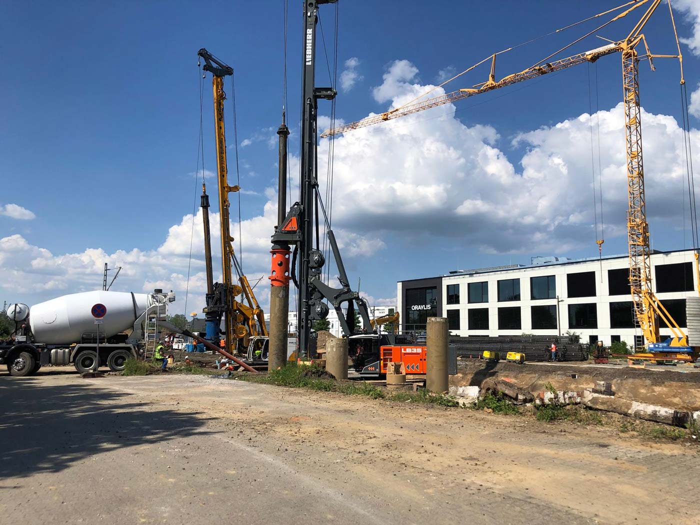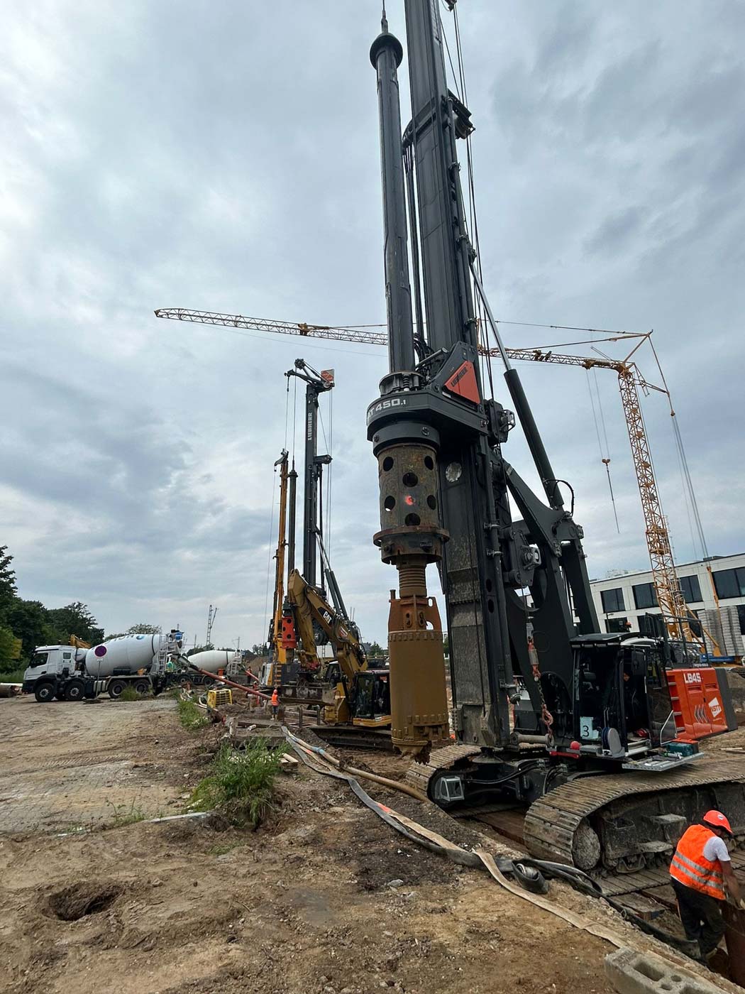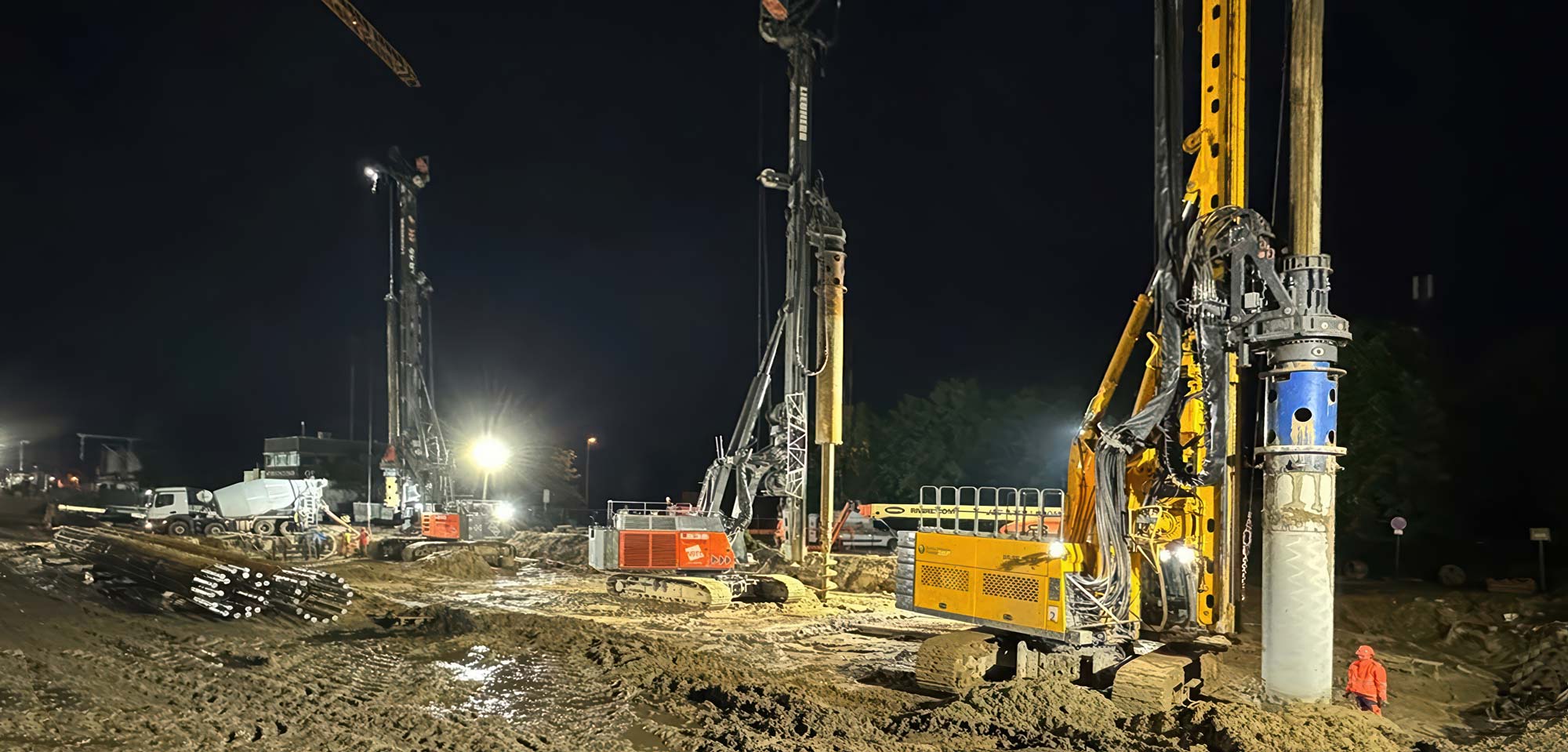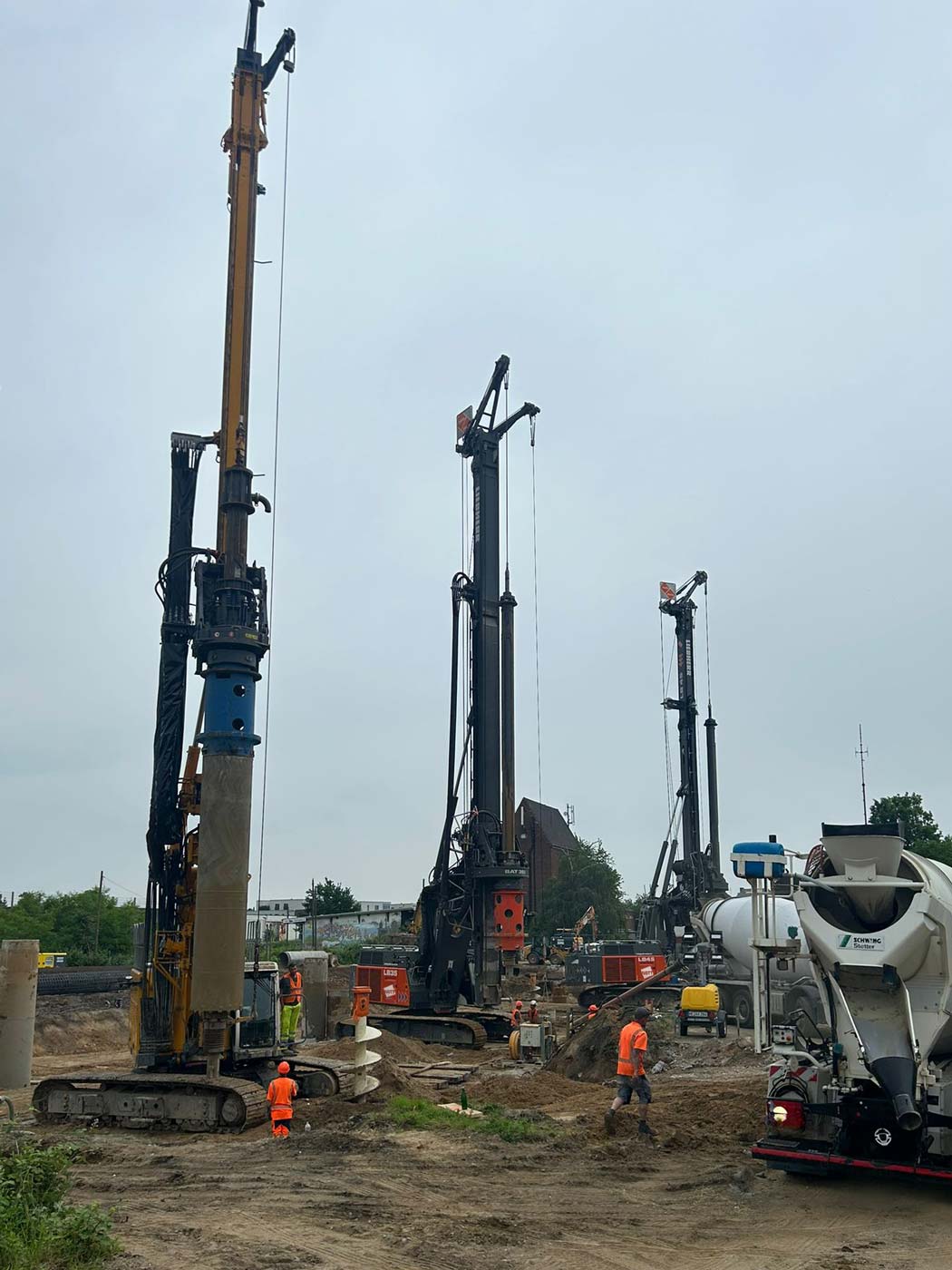 Zum Einsatz kamen dabei drei hochmoderne Groß-Bohrgeräte: Liebherr LB 45, Liebherr LB 35 und Bauer BG 33. Die Einrichtungsarbeiten der Baustelle begannen am 8. Mai 2024, und am 29. Mai wurde fristgerecht der letzte Bohrpfahl hergestellt.