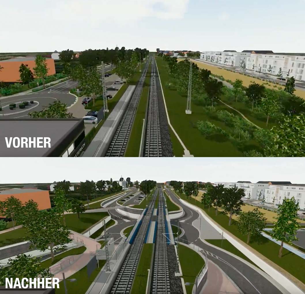 Die Lösung für dieses langjährige Problem besteht aus dem Bau einer neuen Unterführung für Fußgänger und Radfahrer sowie einer neuen Bahnbrücke direkt hinter dem Bahnhof. Unter der Brücke wird ein Kreisverkehr mit einem Durchmesser von 40 Metern entstehen, der als neuer Verkehrsknotenpunkt den Ost- und Westteil von Osterath miteinander verbindet.