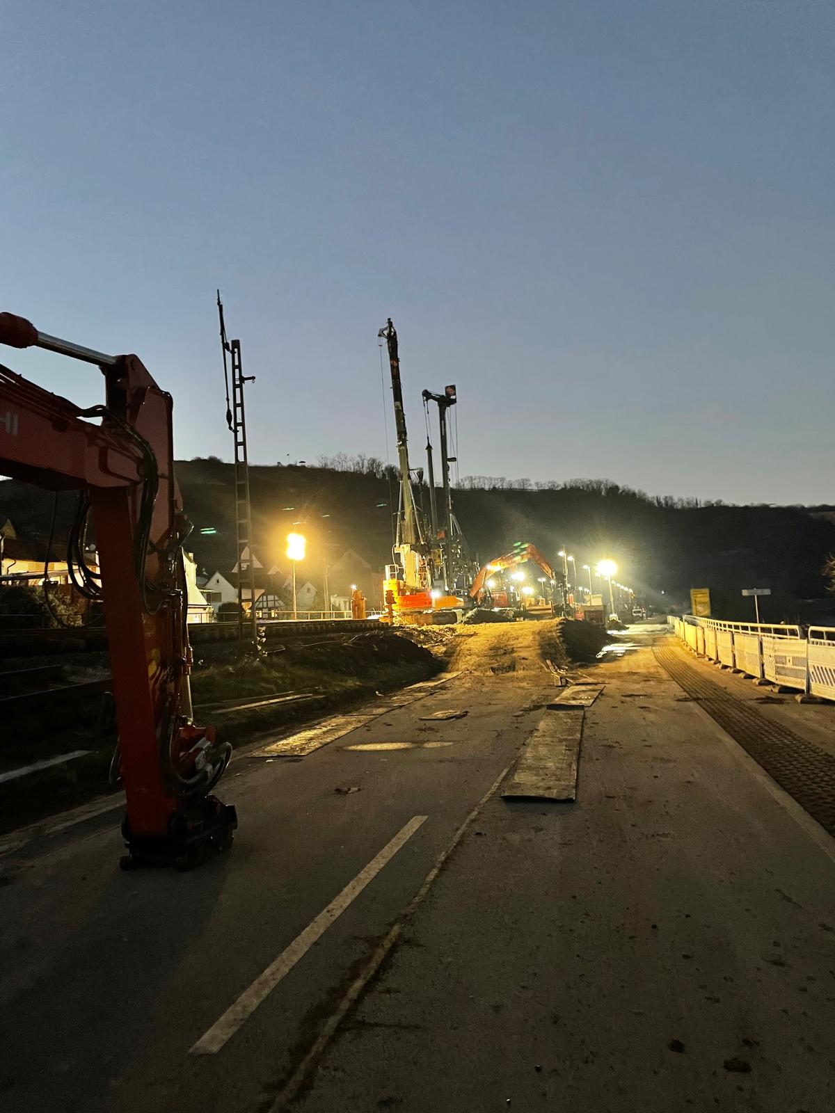 In Lehmen, Landkreis Mayen-Koblenz in Rheinland-Pfalz, wird eine Bestandsnetz-Eisenbahnüberführung erneuert. In einer ersten Sperrpause soll die Überführung rückgebaut und durch Hilfsbrücken ersetzt werden. In einer zweiten Sperrpause wird ein Stahltrog als finaler Überbau des Brückenbauwerks eingesetzt.
