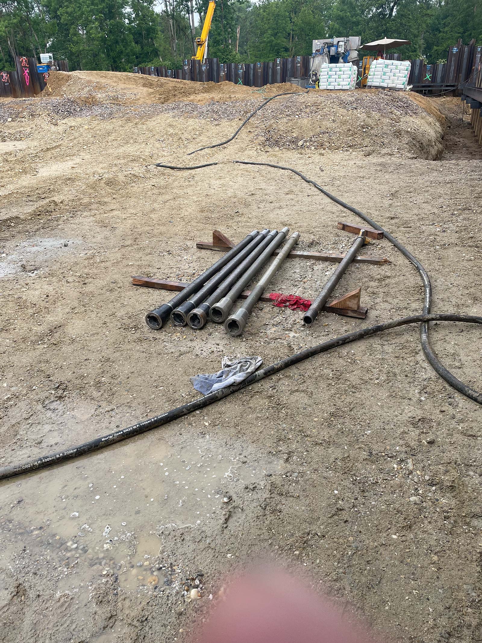 Deggendorf - Erstellung Zementfuß durch Zementverpressung im Fußbereich eines Spundbohlenverbaus mittels 100fachem Einsatz von Ischebeck Titan.