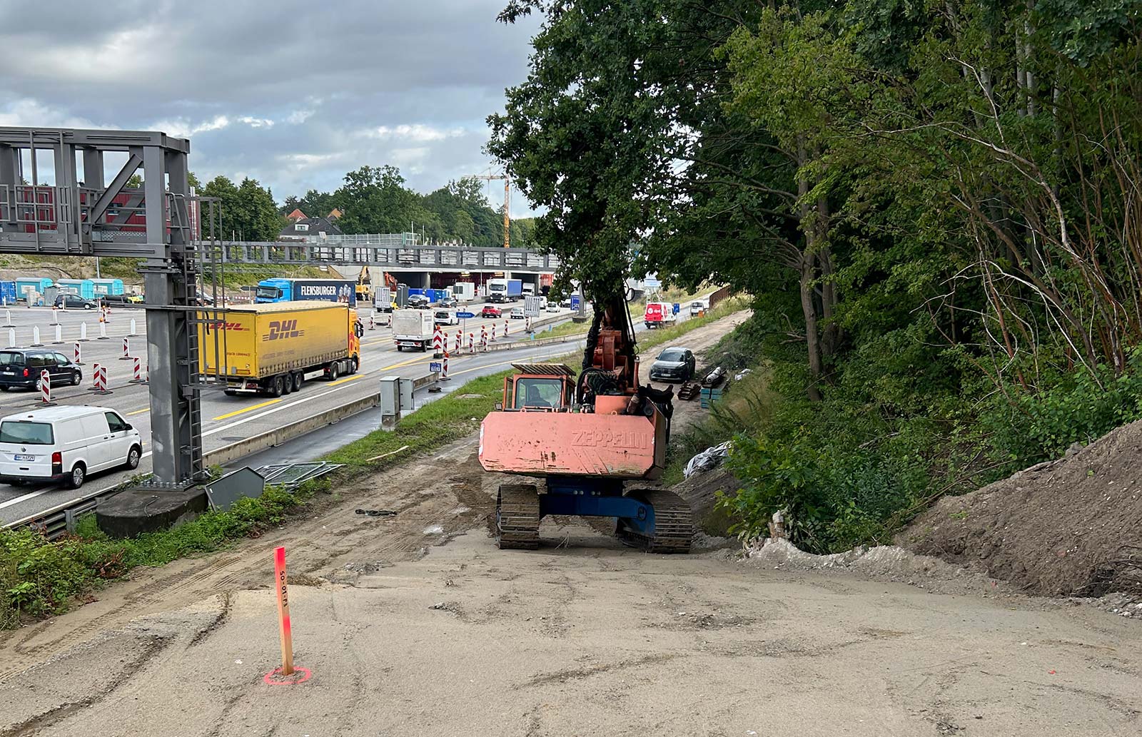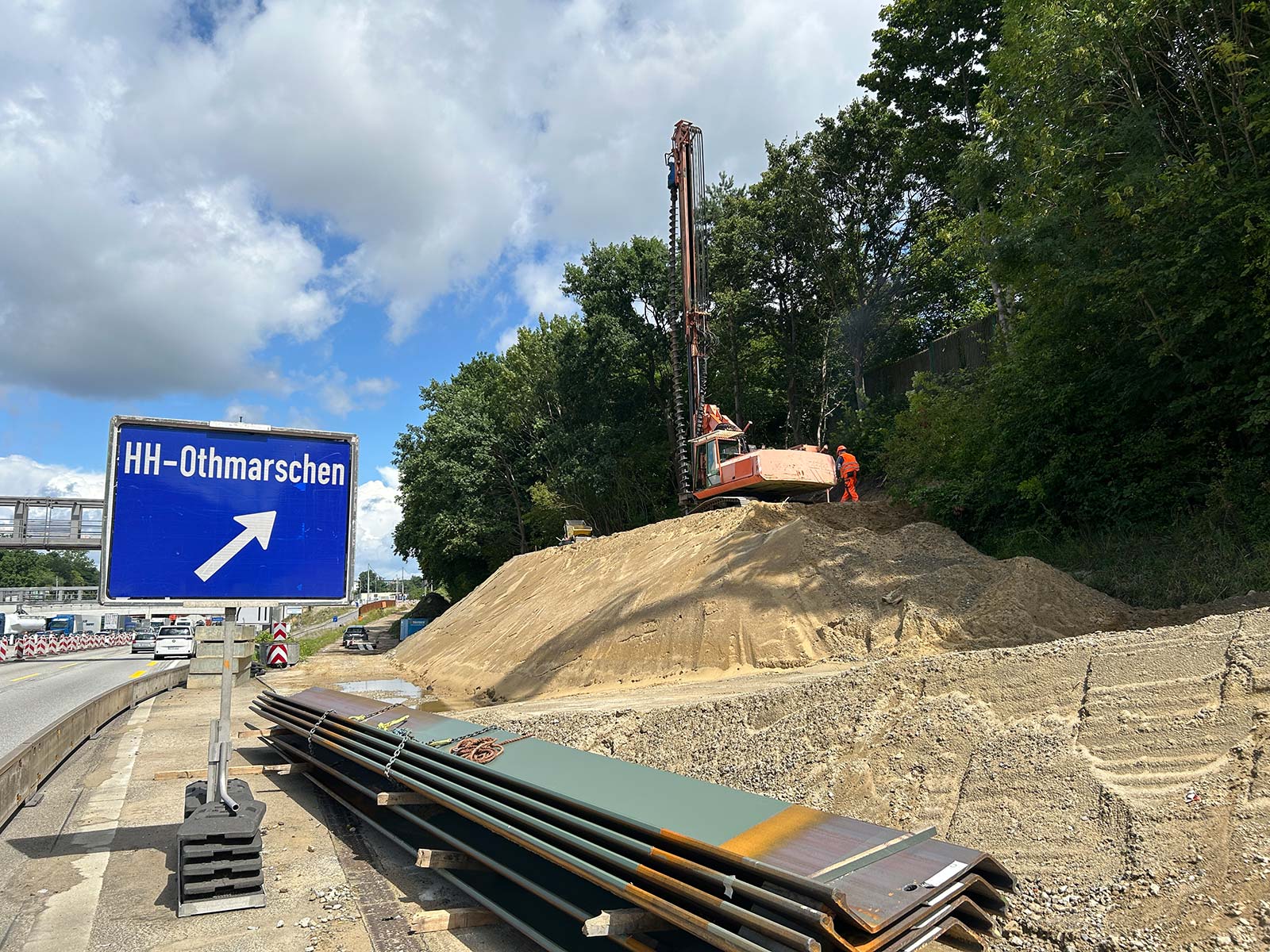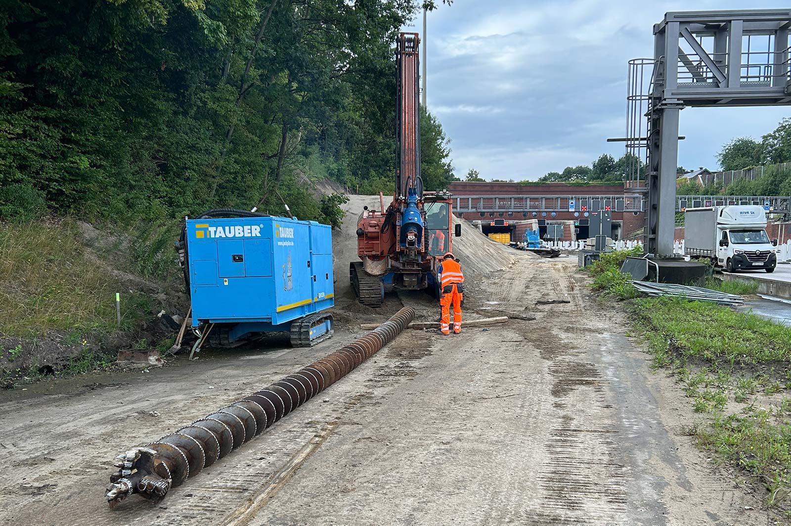 Hamburg-Altona A7 - Vorbohrarbeiten für den Bau einer Stützwand mit nur wenigen Tagen Vorlaufzeit