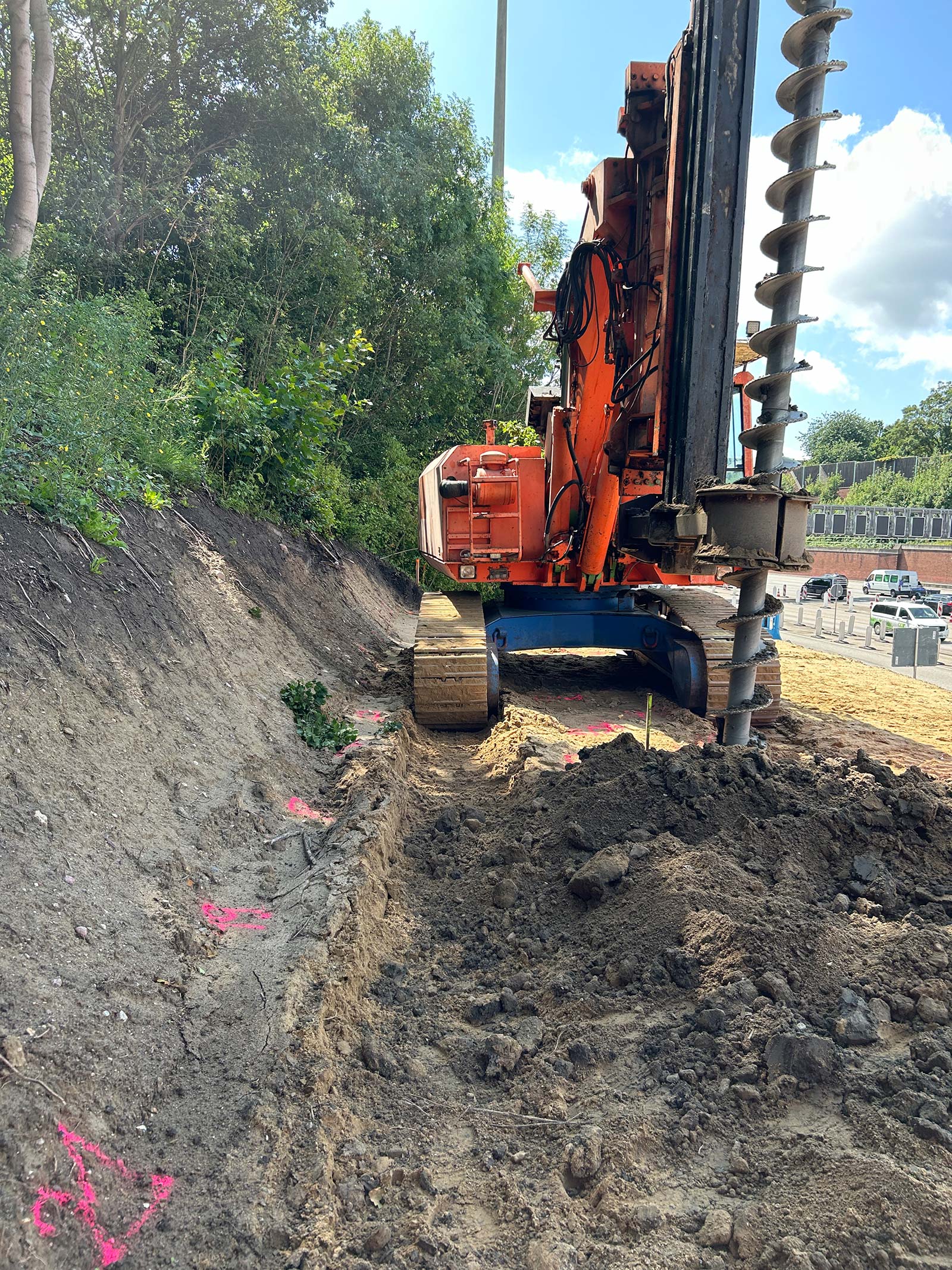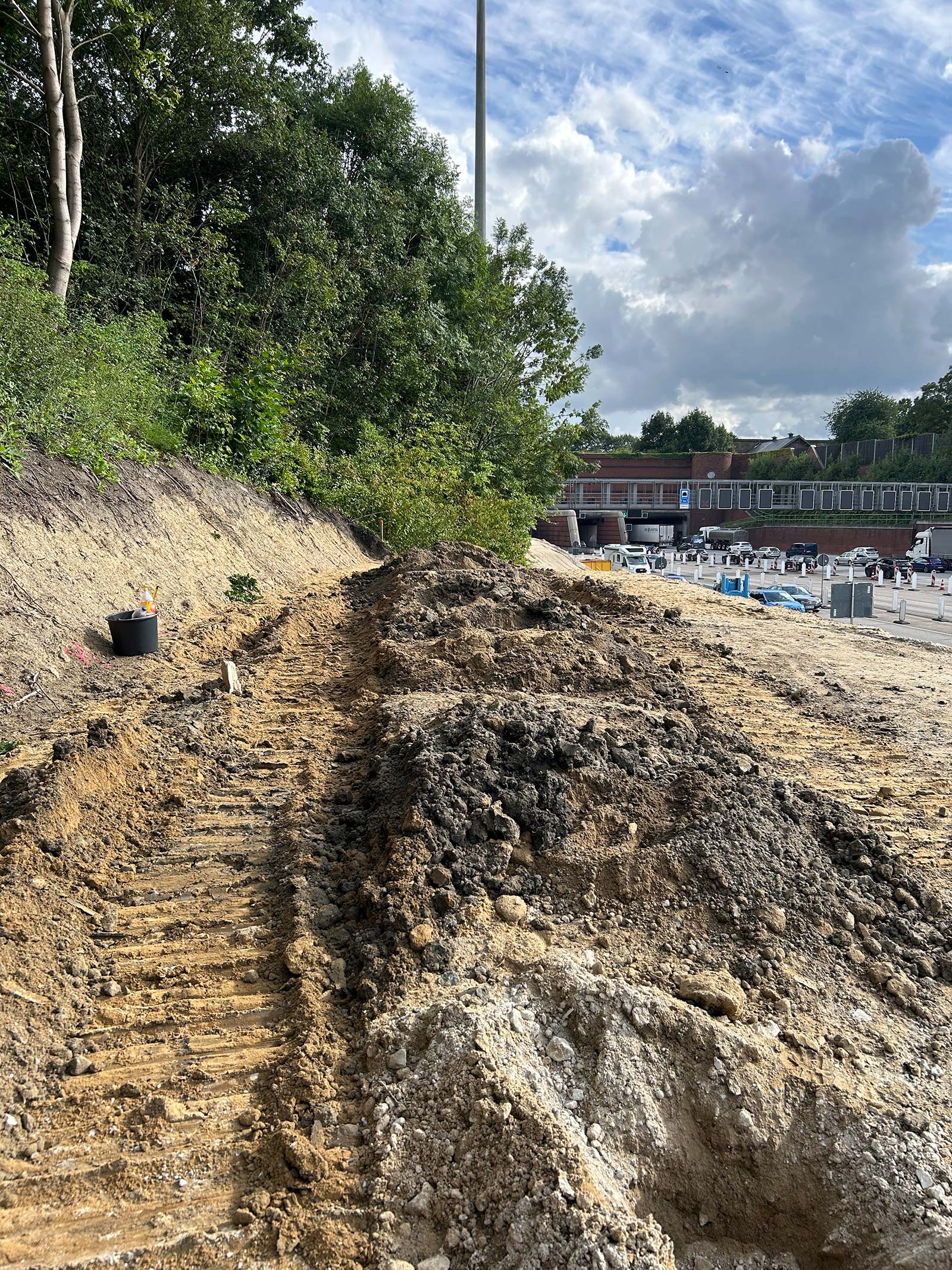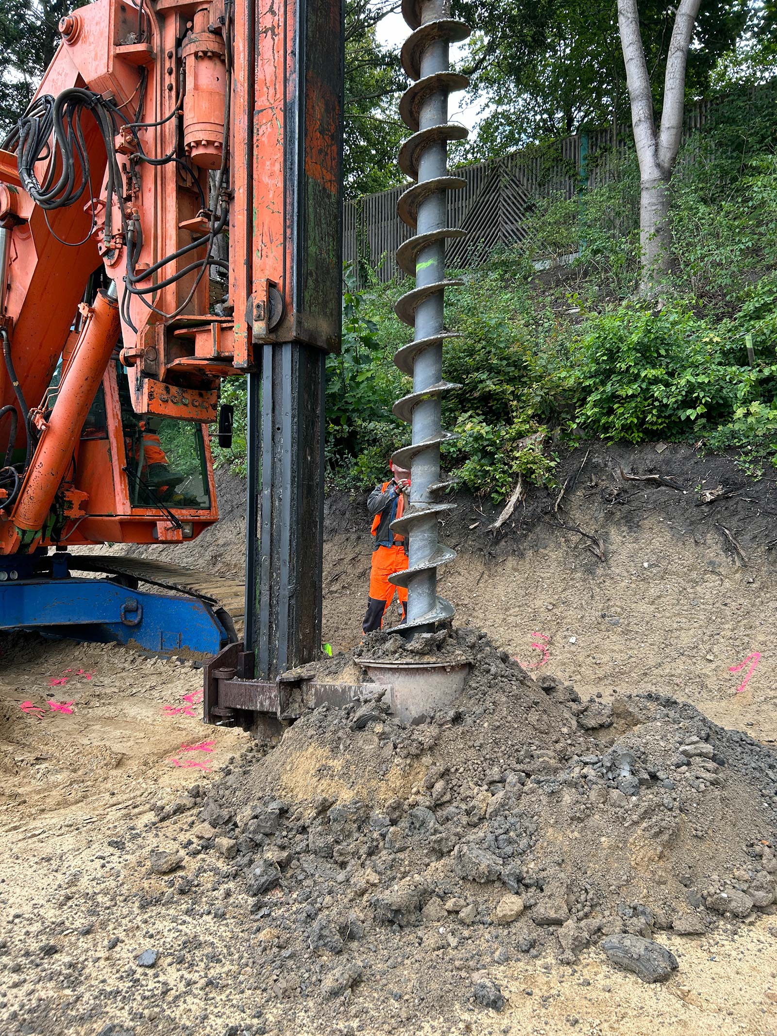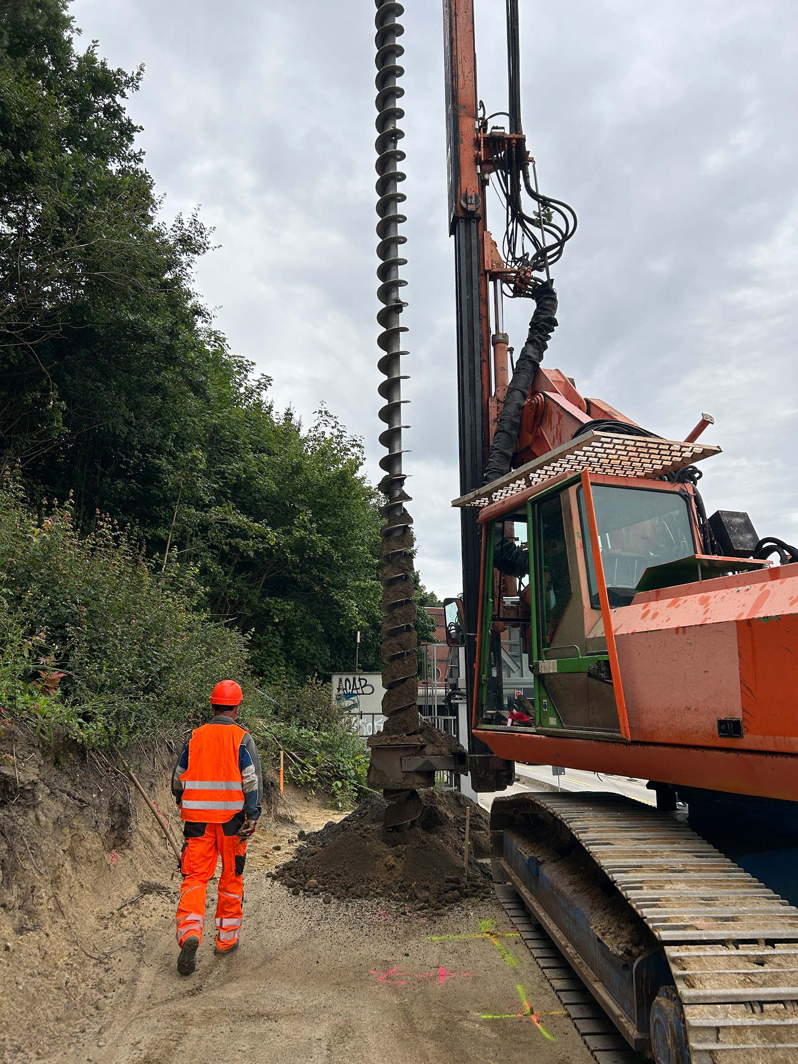 Hamburg-Altona A7 - Vorbohrarbeiten für den Bau einer Stützwand mit nur wenigen Tagen Vorlaufzeit