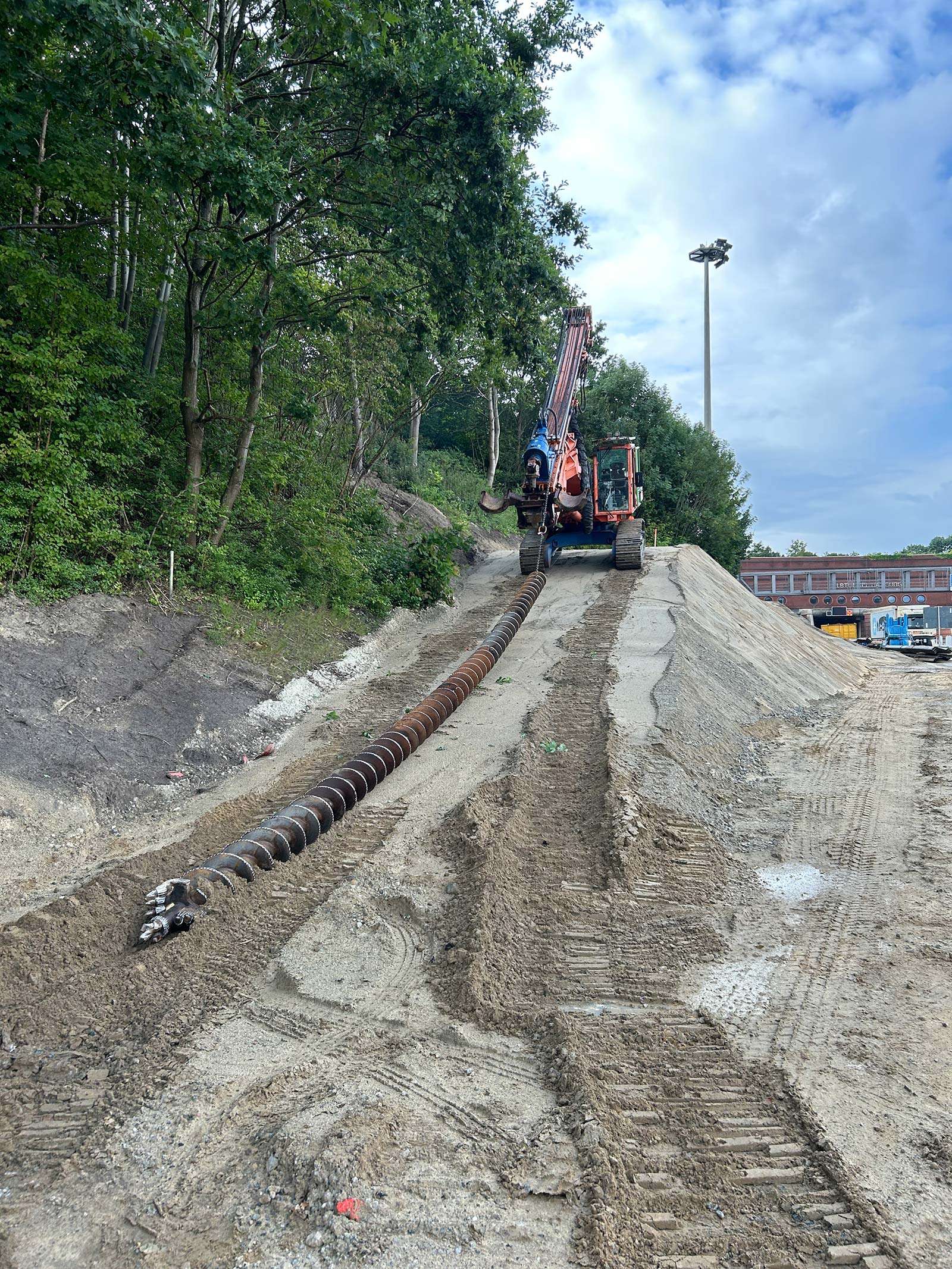 Beim Ausbau der Autobahn A7 Tunnel Altona sollte mittels Pressverfahren eine Stahlspundwand als Stützwand eingebracht werden. Aufgrund der deutlich höheren Lagerungsdichte des Bodens, konnten die Spundbohlen entgegen der Planung nicht ohne Vorbohren in den Boden eingebracht werden. Ein kurzfristiger Einsatz für das Vorbohren war von Nöten, bei dem wir, die SFS International GmbH, aushelfen konnten.