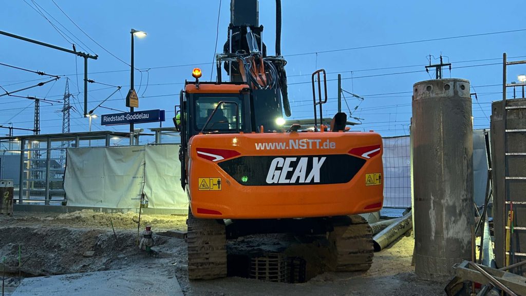 Riedstadt – Herstellung Bohrpfähle mit Ø 750 mm am Bahnhof Riedstadt-Goddelau unter beengten Verhältnissen.