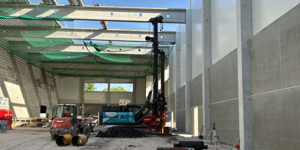 Erstellung Bohrpfähle: Gründungsarbeiten in einer Halle