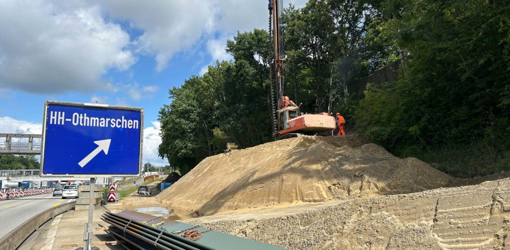 Hamburg-Altona A7 – Vorbohrarbeiten für den Bau einer Stützwand mit nur wenigen Tagen Vorlaufzeit