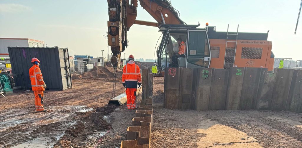 Erstellung eines Spundwandverbaus für den Bau eines Löschwassertanks