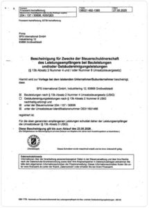 Bescheinigung zur Steuerschuldnerschaft des Leistungsempfängers bei Bauleistungen